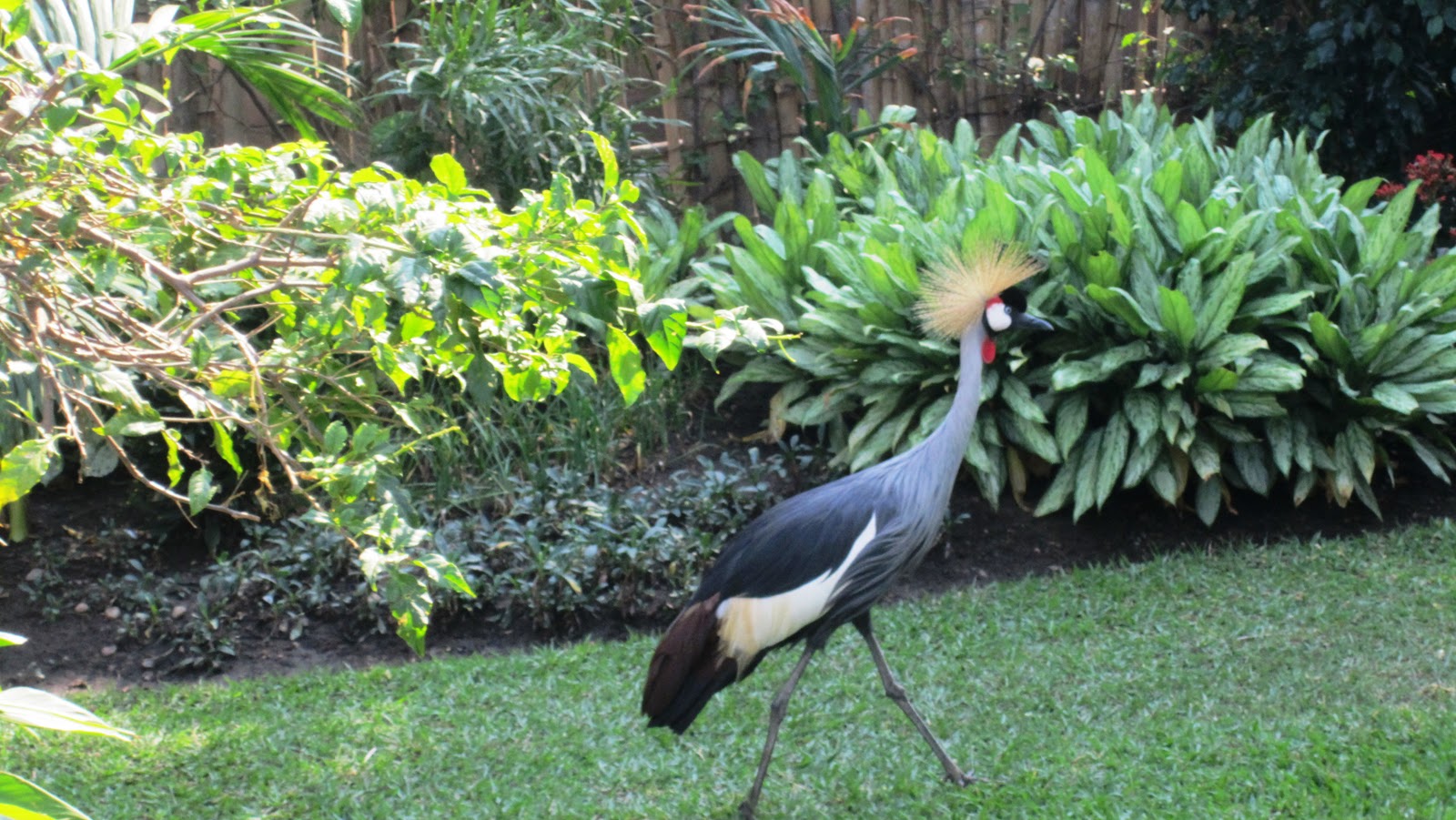 This beautiful bird is the Crowened Crain! I have seen them several times. They are UNUSUALLY beautiful! They are the official Bird of Burundi. It is on many official ensignias of the city and country!